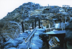 This photo, taken on the mountain in December 1969. This is the West end of the mountain where the 1st Platoon occupied and guarded. Note the "Rock Pile" on the berm to the left. I think that is "Rocket Ridge" to the right of the berm in the center